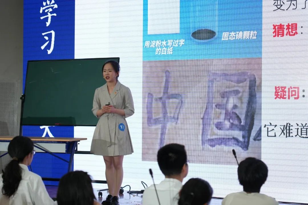 决赛主要包括模拟课堂和风采展示两个考察环节。在模拟课堂环节,参赛选手自选初高中课程进行时长8分钟的授课展示,现场有学生与参赛选手互动。选手们引人入胜的课堂充分展现了未来教师扎实的教学基本功。在风采展示环节,每位参赛选手从“时事话题分析”、“教育教学情景模拟”和“教育主题辩论”三类题目中随机抽取一题,根据要求现场阐述观点或提出应对之道。他们出色的表现不仅让在场观众大呼过瘾,更充分展现了高师学子对时事热点的深刻思考、掌控课堂的能力素质和心系家国的教育情怀。