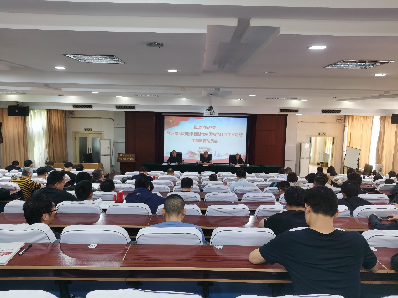 4月18日,物理学院在物理南楼二楼报告厅召开学习贯彻习近平新时代中国特色社会主义思想主题教育动员会,学院党政领导班子,学院全体教师参加了动员会,会议由副院长赵凯主持。