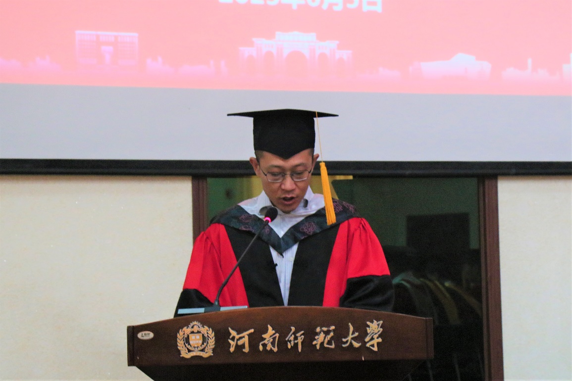 “扬帆远航,勇为国之栋梁;奋斗今日,无憾青春年华。百年师大,勿忘饮水思源;知行合一,誓为桃李芳华。”临别之际,毕业生代表2019级博士生崔明焕同学在典礼上发言,表达了对母校的感恩、眷恋与不舍,也喊出了无憾青春的铮铮誓言。学生家长代表2019级本科毕业生张怡冰家长表达了对学院老师们的深深感恩,也送出了对毕业生的祝福。教师代表、本科毕业年级辅导员张浩兴在发言中希望全体毕业生永远做勤学思考的人、永远做善良温暖的人、永远做热爱生活的人、永远做担当进取的人。