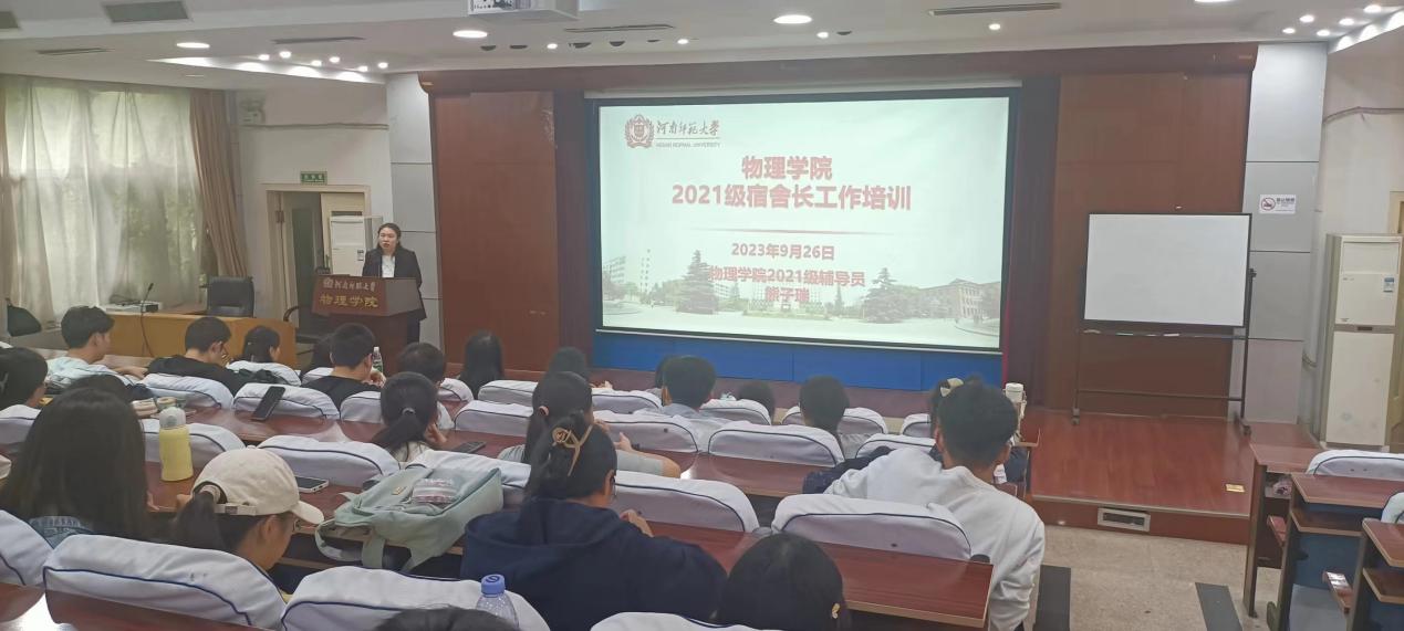 为进一步提高宿舍管理能力,切实发挥宿舍长在学生安全教育工作中的重要作用,营造更加安全、文明、和谐的宿舍环境,9月27日,学院于物理南楼报告厅召开新学期宿舍长工作培训会。