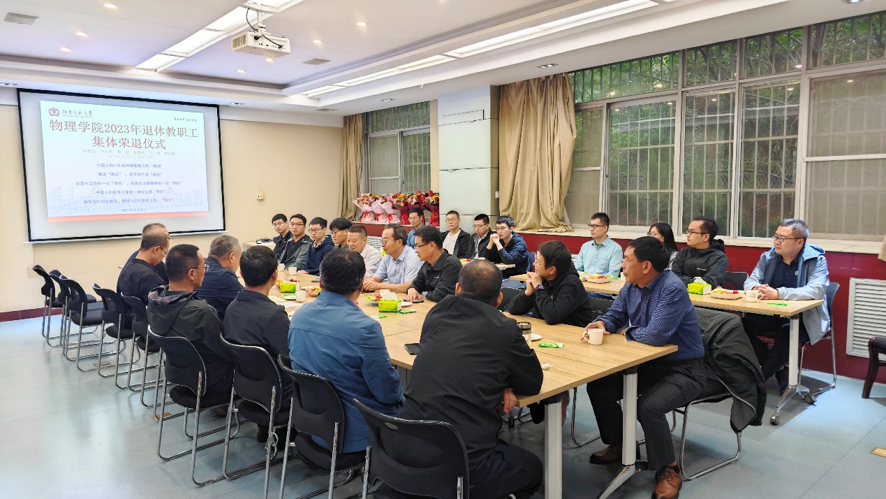 仪式最后,陈明银祝愿各位老师退休生活更充实、更精彩,也希望大家常回学院看看,继续为学院的发展献计献策。同时,嘱托新教师向老教师看齐,传承为师之道、赓续师大精神,助力物理学院在新百年扬帆起航,再创辉煌!