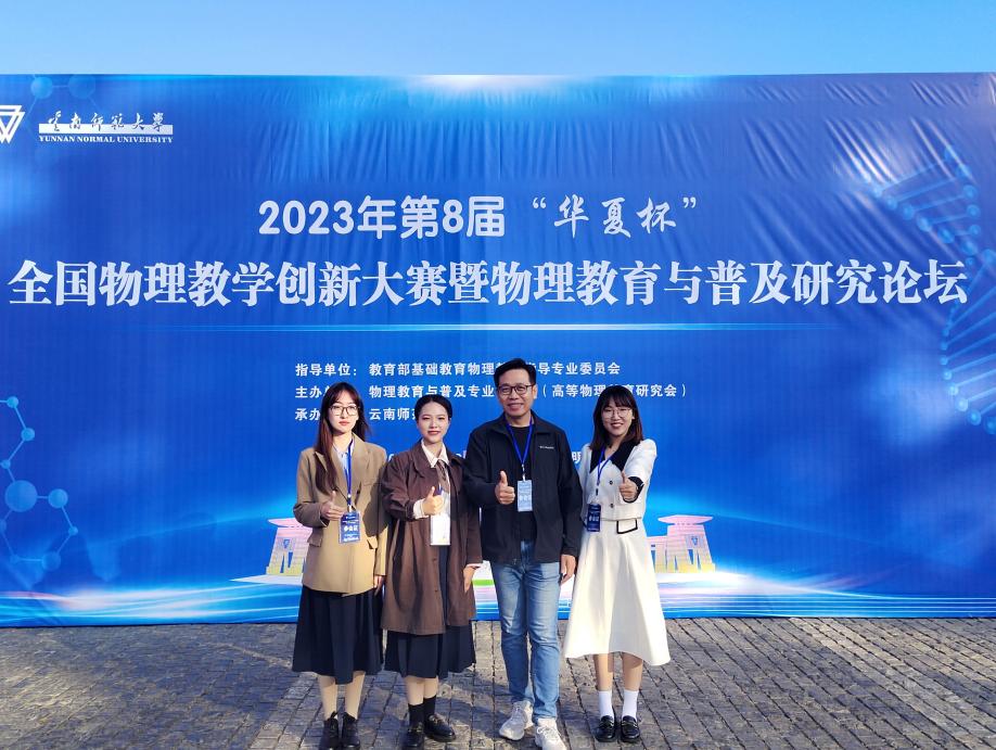 11月5日,第八届“华夏杯”全国物理教学创新大赛暨物理教育与普及研究论坛落下帷幕。物理学院共三名本科生参加本次大赛,荣获本科组二等奖2项、三等奖1项。物理学专业2021级本科生包洪欣、张诣卉分别获得二等奖,王鑫蕊获得三等奖。指导老师陈运保、靳来鹏和陈留定获“优秀指导教师”荣誉称号。