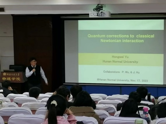 11月17日,应我校物理学院邀请,湖南师范大学余洪伟教授在物理南楼二楼学术报告厅为粒子物理专业的师生呈现了一场精彩的报告,报告题目是“Quantum corrections to classical Newtonian interaction”,相关专业师生参加了报告会。