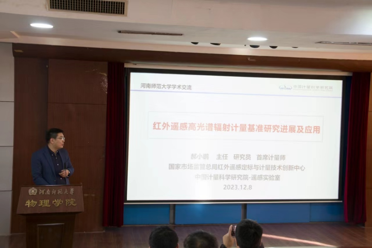 2023年12月8日下午,中国计量科学研究院首席科学家郝小鹏研究员应邀在物理南楼二楼学术报告厅为物理学院师生作了题为“红外遥感高光谱辐射计量基准研究进展及应用”的学术报告,学院相关专业教师、研究生和本科生参加了此次报告。