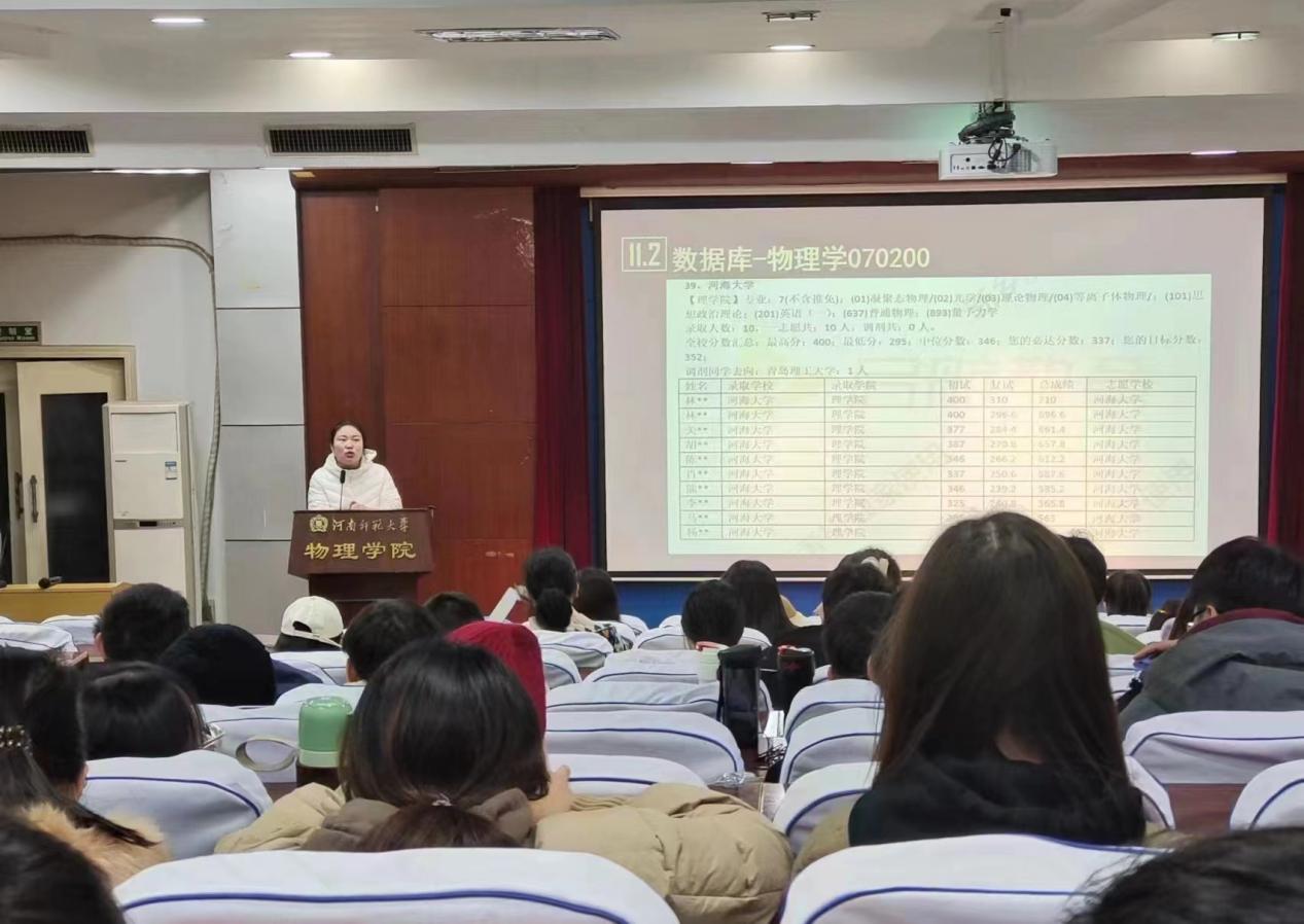 为全面推进学院学风建设质量提升月各项工作举措落实落细,帮助学生坚定学习目标,进一步提升学业能力,近期,物理学院于南楼报告厅二楼召开学业发展分享会,辅导员及学生代表参加本次活动。