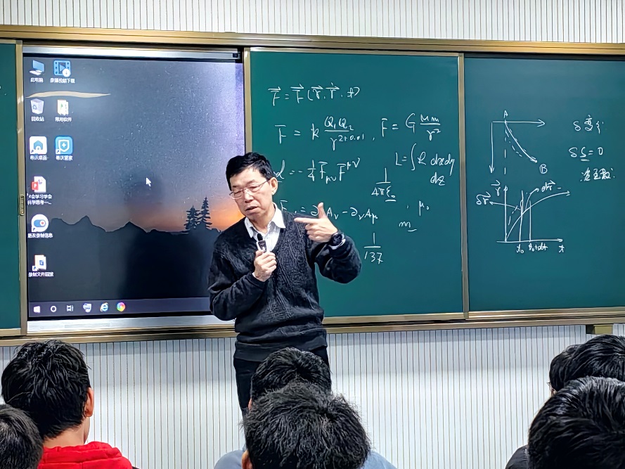 为扎实推进物理学院一流课程建设,增进教师教学经验交流,提高课堂教学质量,2023年12月15日下午,我院特邀请了南开大学物理学院刘玉斌教授,在田家炳三楼智慧教室讲授《理论力学》分析动力学内容,现场听课的有俊甫书院物理学专业求是拔尖班等60多名大二本科生,以及《理论力学》课程团队教师。俊甫书院副院长董乐教授主持并致欢迎辞。