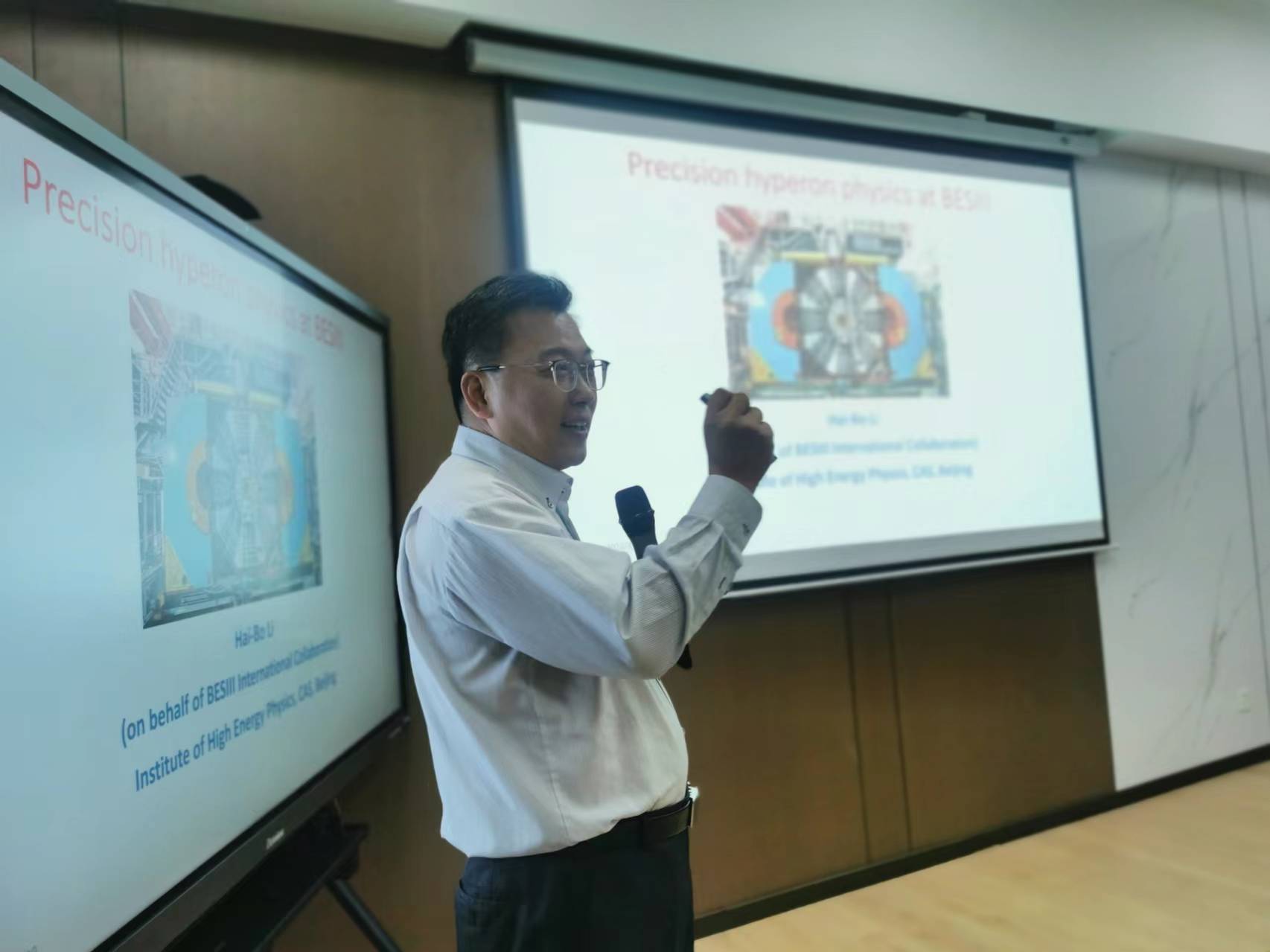 2024年3月29日下午,应物理学院邀请,我校杰出校友——中国科学院高能物理研究所李海波研究员来到我校,在物理北楼C505报告厅为学院师生做了一场精彩的学术报告,报告题目是“BESIII上的超子物理”。报告会由物理学院常务副院长常钦教授主持,学院师生50余人参加此次报告会。
