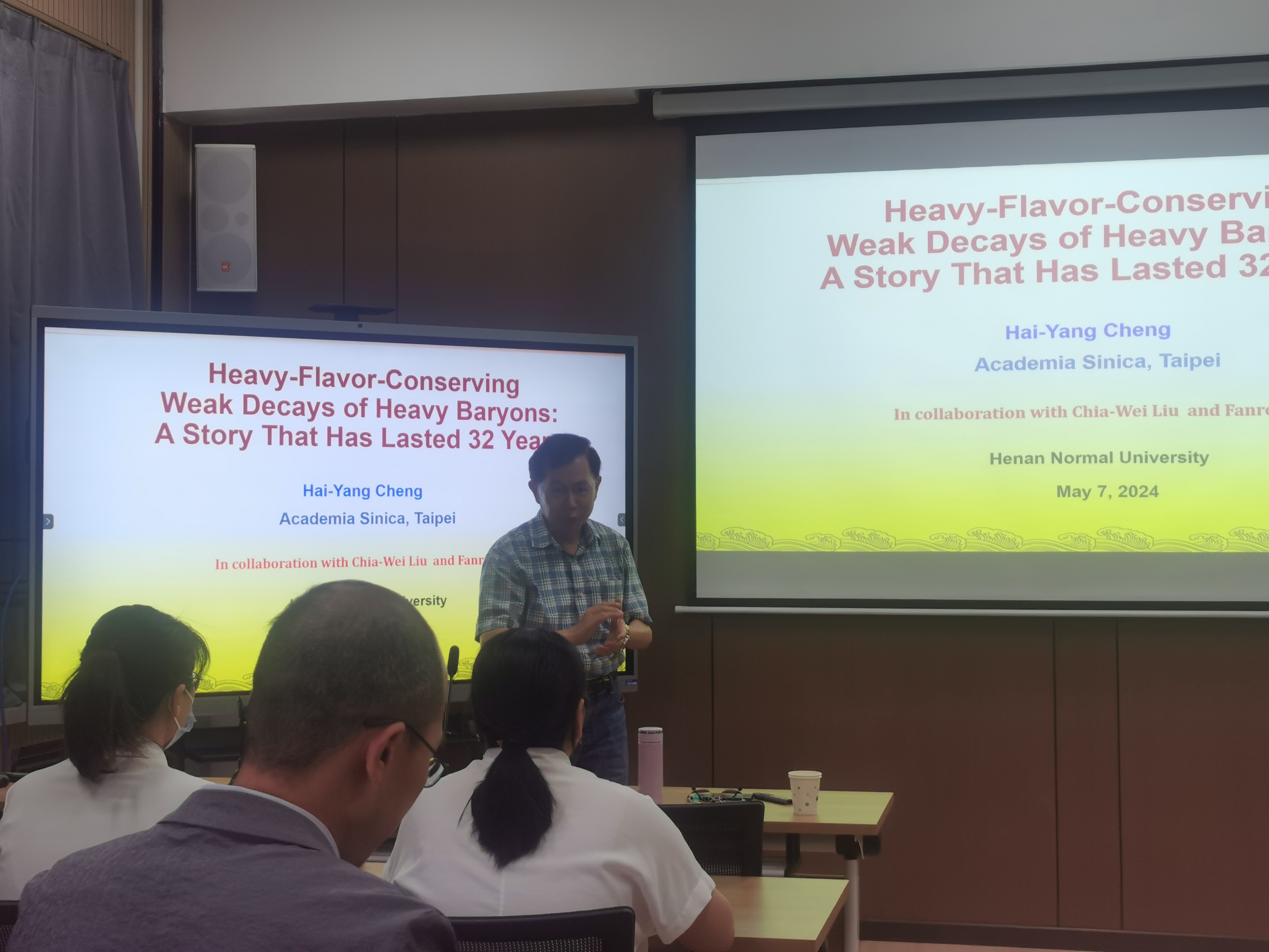 应我校物理学院邀请,中国台湾中央研究院物理研究所郑海扬研究员来我校进行学术交流和访问。5月7日上午在物理北楼C505报告厅,郑海扬研究员为学院师生做了一场精彩的学术报告,报告题目是“Heavy-flavor-conserving weak decays of heavy baryons”。报告会由物理学院常务副院长常钦教授主持,学院师生50余人参加此次报告会。