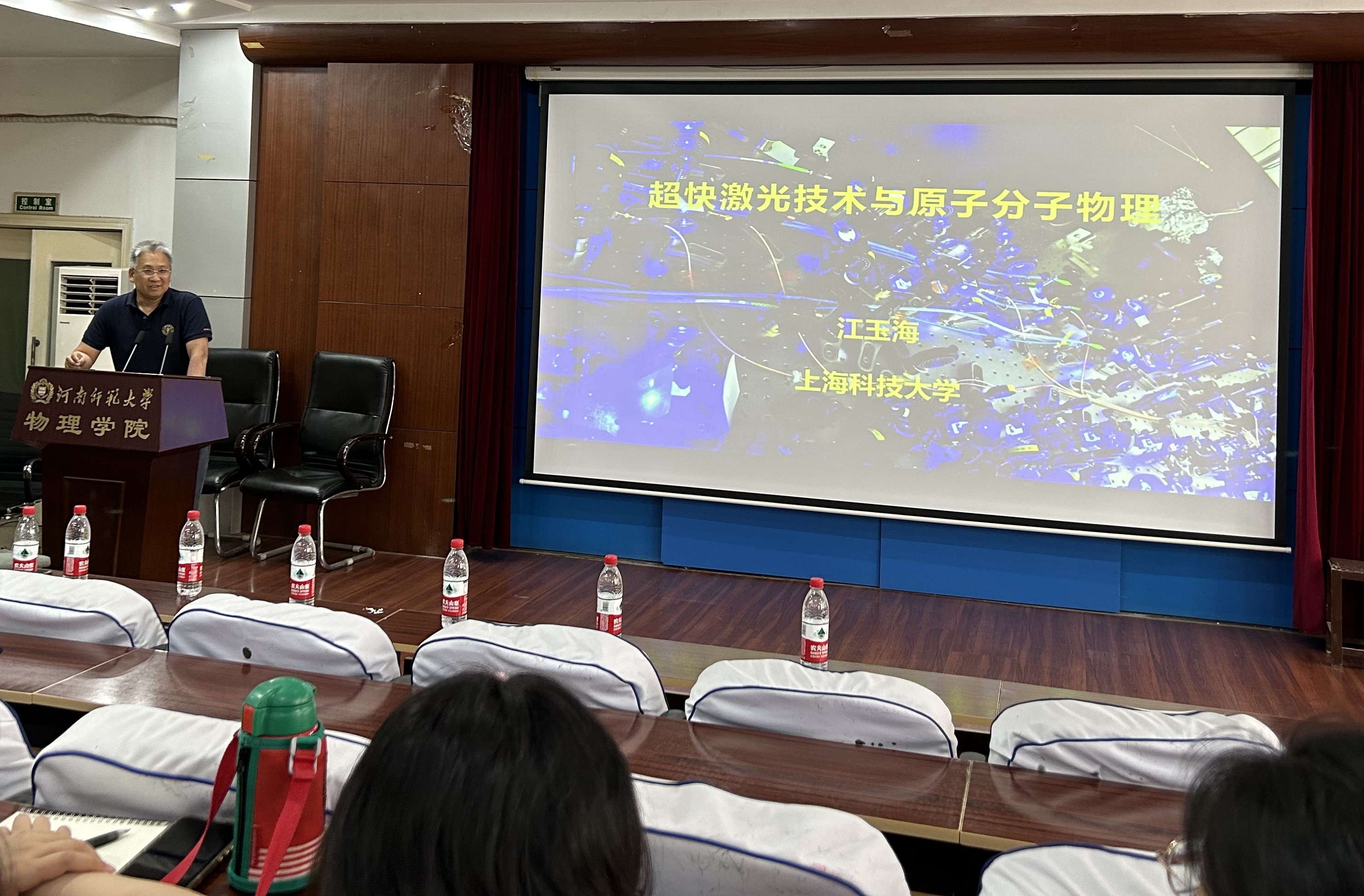 5月16日下午,应我校物理学院邀请,上海科技大学江玉海教授来我校讲学,在物理南楼二楼报告厅呈现了一场精彩的报告,报告题目是“超快激光技术与原子分子物理”,物理学院副院长于坤教授主持,副院长秦朝朝教授以及相关专业的教师、研究生和本科生参加了本次报告会。