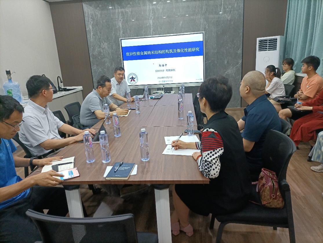 5月21日下午,应我校物理学院邀请,郑州大学物理学院郭海中教授在物理南楼会议室为物理学院师生作了题为 “优异性能金属纳米结构的构筑及催化性能研究”的学术报告,物理学院相关师生参加了会议。