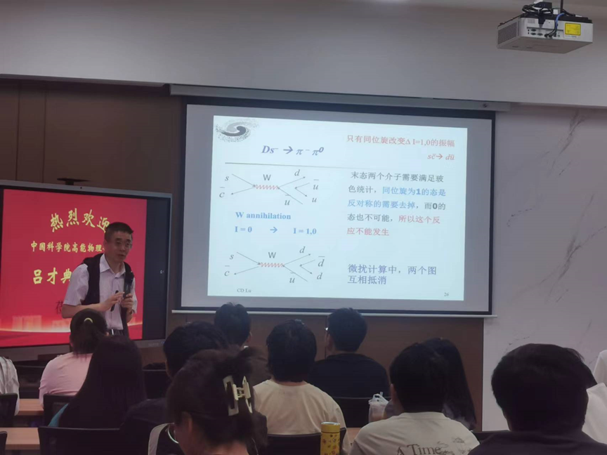 应我校物理学院邀请,中国科学院高能物理研究所吕才典研究员来我校进行学术交流和访问。6月1日上午在物理北楼C505报告厅,吕才典研究员为我校50多名师生做了一场精彩的学术报告,报告题目是“同位旋对称性在弱衰变中的应用”。