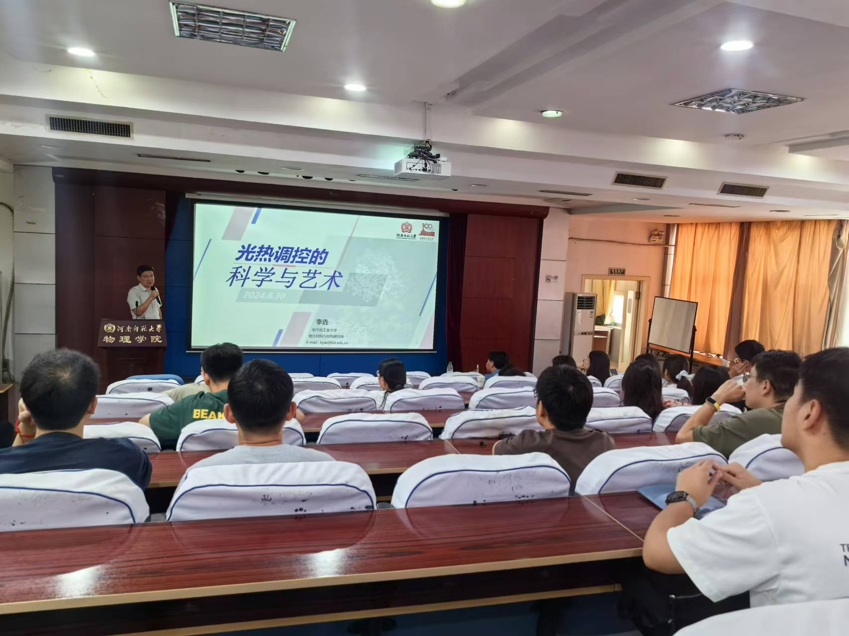8月30日下午,应我校物理学院邀请,哈尔滨工业大学李垚教授来我院作题为“光热调控的科学与艺术”的学术报告,相关教师及研究生参加了报告会。