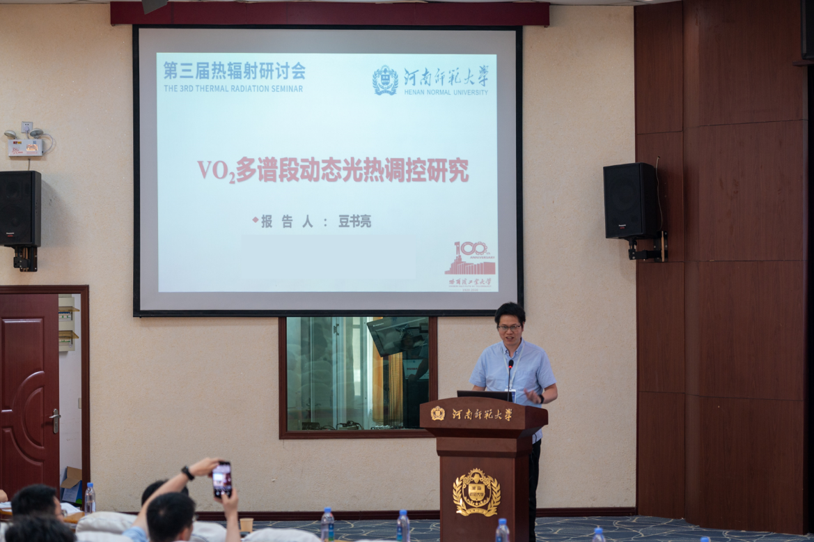 豆书亮副教授在报告中深入探讨了VO2材料的独特性质及其在热辐射领域的广泛应用。VO2以其独特的金属-绝缘体相变特性著称,这使得其在多谱段动态电磁调控中显示出巨大的潜力。副教授豆书亮详细介绍了VO2在从可见光到微波波段的动态调控特性,并展示了如何通过构筑不同的光学器件,实现对超宽谱段电磁波的有效调控。