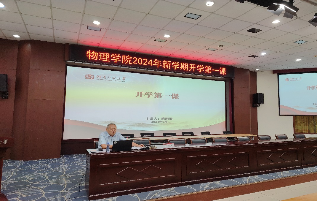 9月8日下午,物理学院在物理北楼三楼报告厅举办2024年新学期思政第一课暨新生开学第一课,本次党课由学院党委书记陈明银主讲,党委副书记宋艳兵、专兼职辅导员和2024级全体本科生参加。开学第一课由党委副书记宋艳兵主持。
