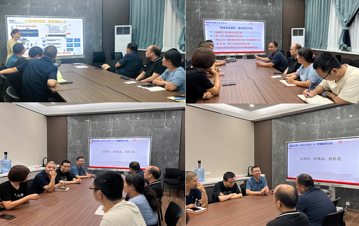 第一,新学期、新教师、新挑战。首先,河南省一流课程《电磁学》负责人宋建副教授,分享了线上线下混合式教学方法和经验;焦照勇教授结合《电磁学》过程化考评和期末考试情况,详细分析了各班的教学成效和学情特点。随后,马淑红教授从学院教学督导听评课视角,介绍了一节好课的评价标准和普遍存在的问题,对新授课教师关于备课、授课等方面提出了具体要求,参会其他教师也分享了一些卓有成效的教学方法和建议。