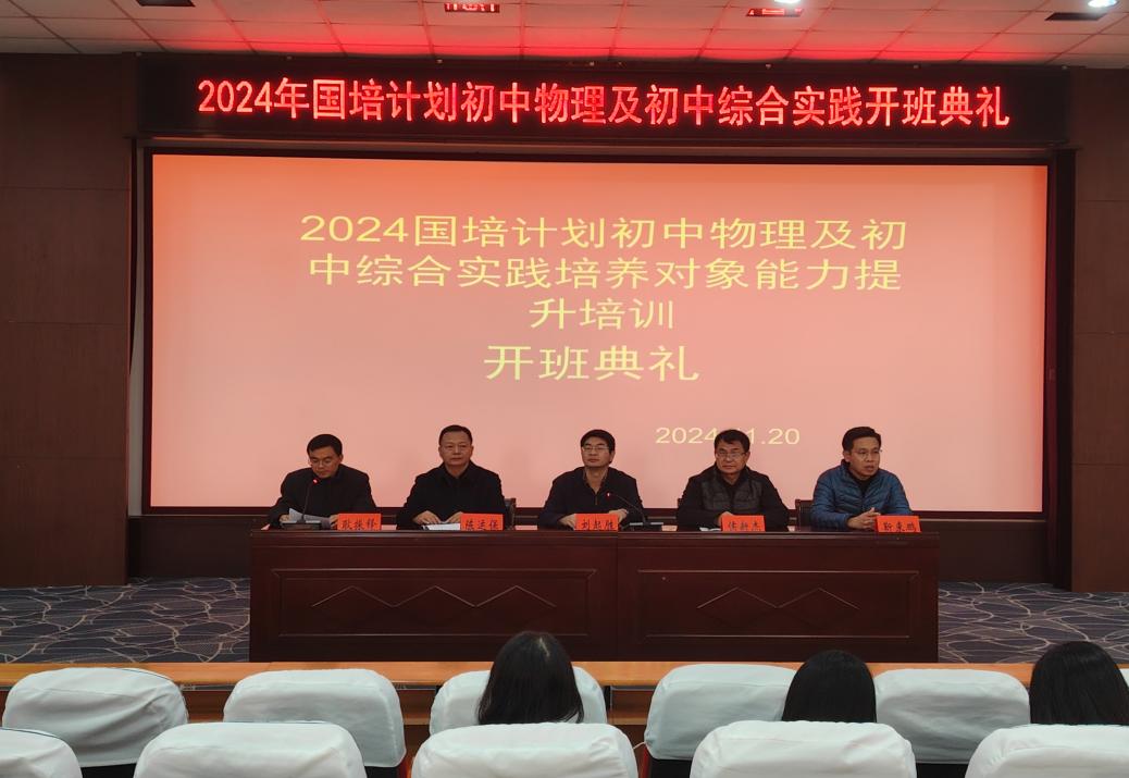 11月20日上午,由物理学院承办的2024年国培计划初中物理和初中综合实践骨干教师培训班在物理北楼三楼报告厅举行。物理学院负责人、培训班首席专家、班主任、培训团队成员及来自全省各市县初级中学的100位骨干教师参加开班仪式,仪式由物理学院社会服务中心秘书耿振铎主持。
