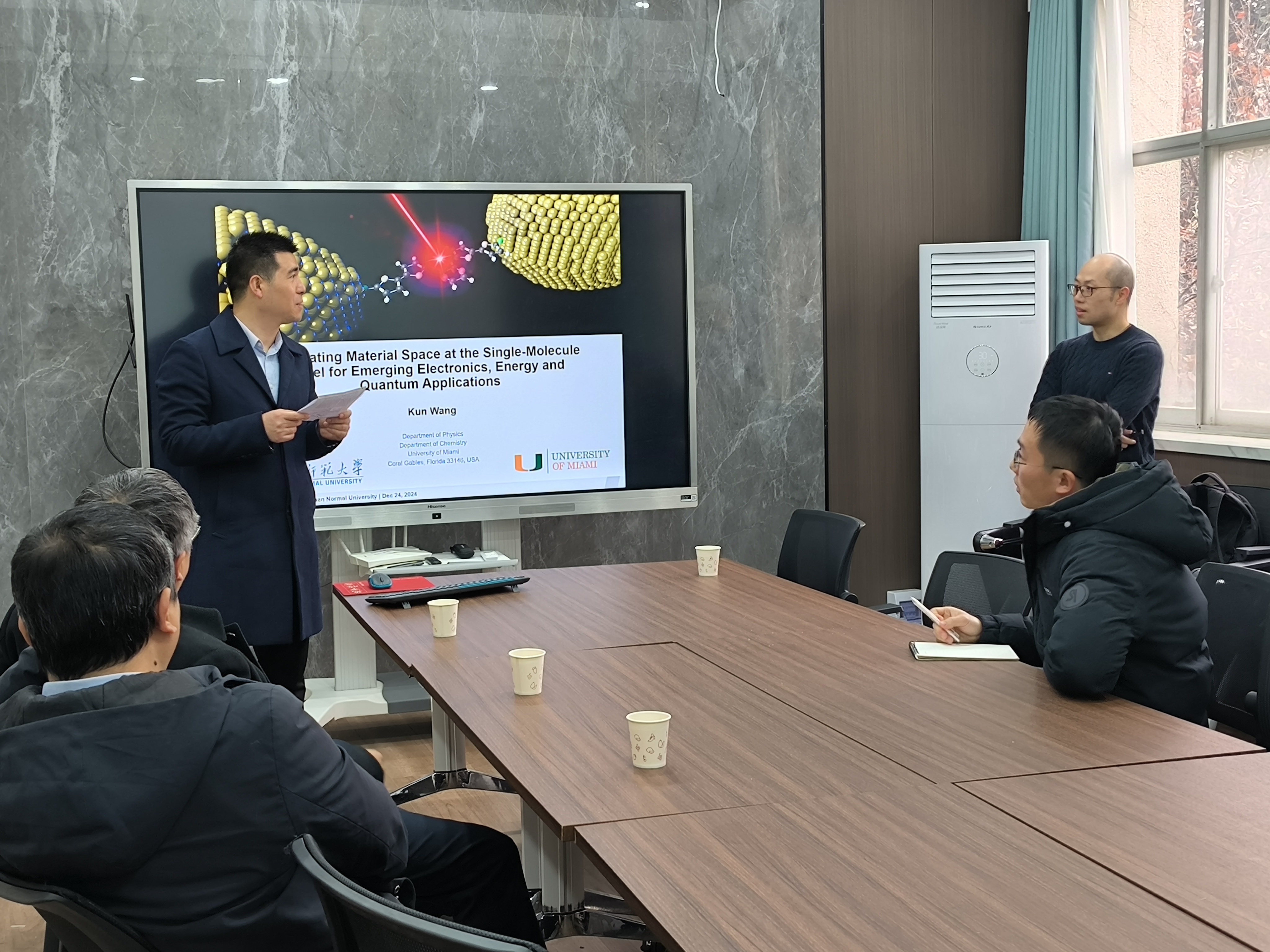 12月24日上午,应我校物理学院邀请,美国迈阿密大学王坤博士在物理南楼二楼217报告厅以“探索分子尺度的量子效应:新奇物理化学过程的涌现”为题作了一场精彩的学术报告。相关专业师生参加了此次报告会。