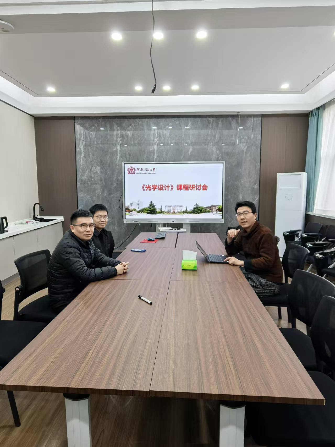 12月30日下午17:00,《光学设计》课程教学团队于物理南楼217举行了教学研讨会,参会教师有刘彦磊、张凯华、李龙飞,会议由课程负责人刘彦磊主持。