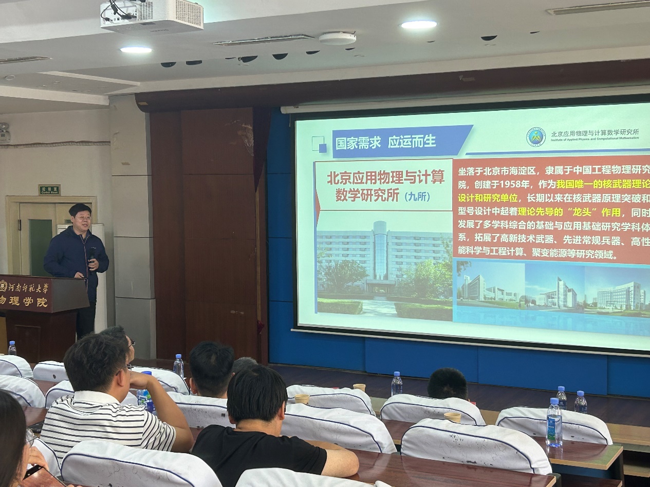 5月11日下午,应我校邀请,北京应用物理与计算数学研究所吴勇研究员来我校访问,在物理南楼二楼学术报告厅作了题为“国防重大需求中的原子分子物理研究”,物理学院相关专业的教师、研究生参加了本次报告会,报告由副院长秦朝朝教授主持。