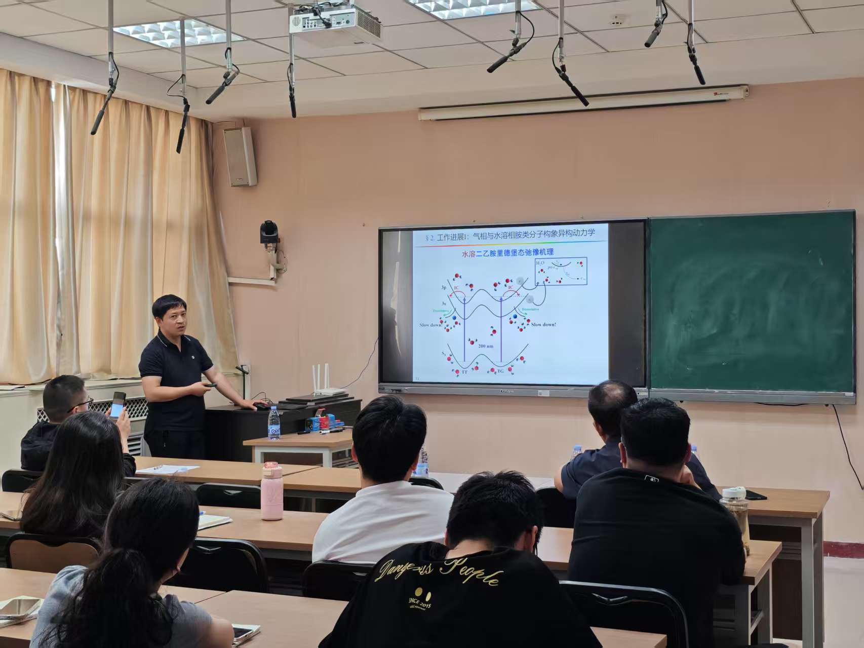 5月17日下午,应我校邀请,中国科学院精密测量科学与技术创新研究院龙金友副研究员来我校访问,在物理南楼511会议室作了题为“飞秒时间分辨的液体束光电子能谱方法及应用”,物理学院相关专业的教师、研究生参加了本次报告会,报告由副院长秦朝朝教授主持。