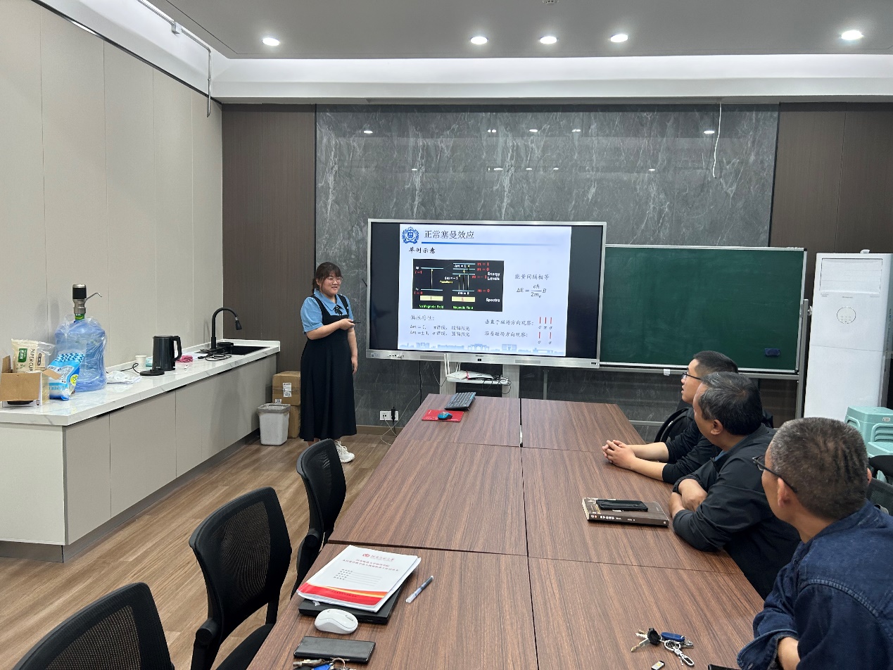 此次活动中,首先由青年教师李顺姣博士进行《塞曼效应》章节的试讲展示。李老师通过背景知识介绍,教学案例分析和多媒体演示等形式,生动形象地讲解了正常塞曼效应。试讲结束后,与会老师进行了多方面点评。徐国亮教授强调了塞曼效应中理论推导与物理图像结合的重要性,特别是具体的原子态;翟红生副教授就讲课过程中老师与学生的面对面交流提出了宝贵建议。