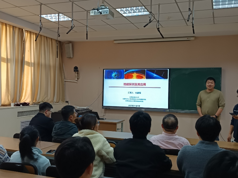 应我校物理学院邀请,北京航空航天大学杜鹏程副研究员来我校进行学术交流和访问。11月1日,在物理南楼217会议室为我校师生呈现了一场精彩的报告,报告题目为“地磁探测及其应用”,学院相关专业教师、研究生和本科生参加了此次报告会。