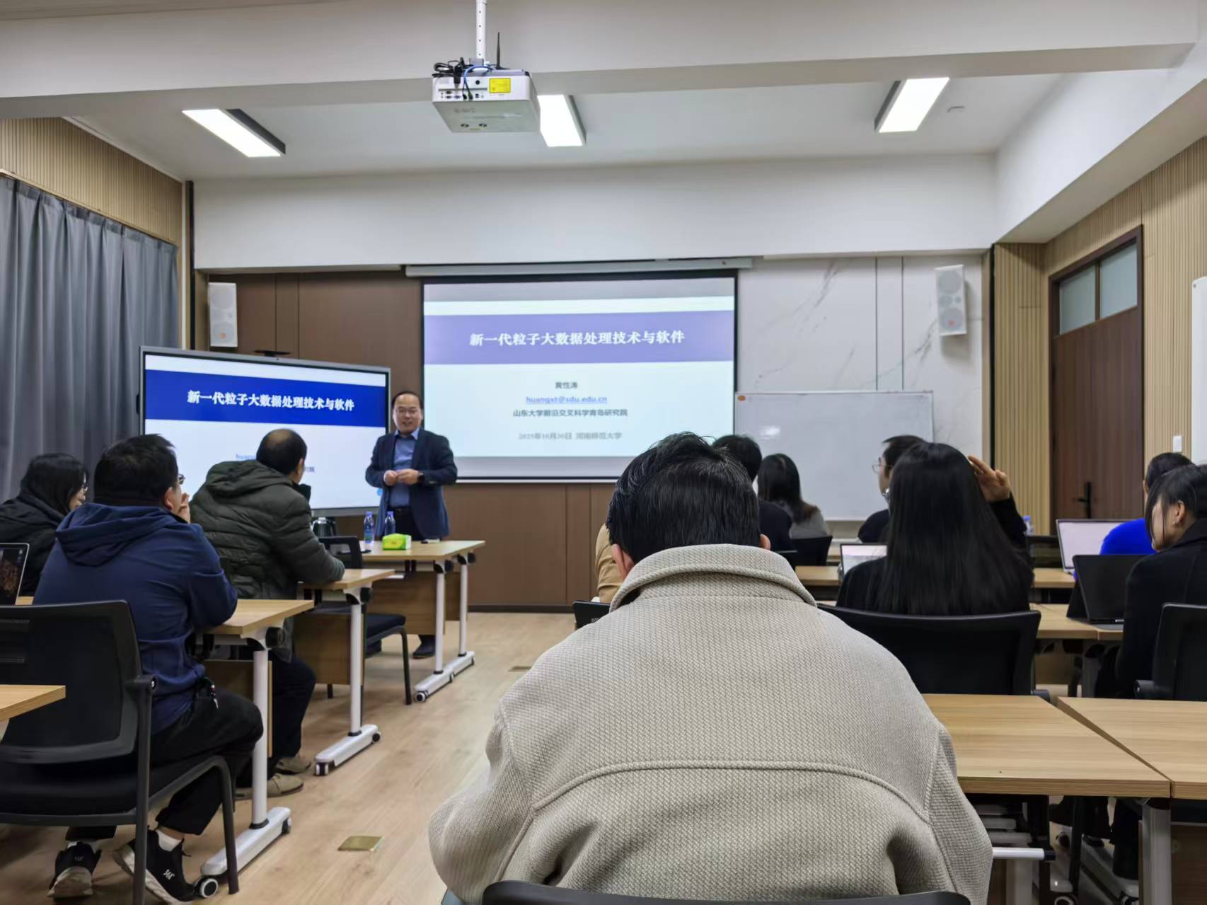 应我校物理学院的邀请,山东大学黄性涛教授来我校进行了一场学术讲座。10月30日下午,在物理北楼C505为我院研究生呈现了一场精彩的讲座,报告题目是“新一代粒子大数据处理技术与软件”,报告由物理学院孙俊峰教授主持。