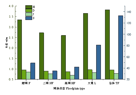 不同类型滩涂物种多样性指数