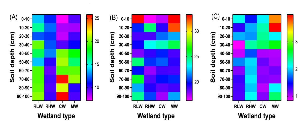 MWTCTN与土壤含水率呈负相关。TPpH呈正相关。河滩湿地类型的转变导致了土壤CNP化学计量的显著变化。频繁的农业活动改变了土壤性质,甚至打破了土壤磷的限制。(Lin et al., 2023)