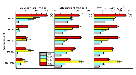 有机碳库增加主要集中在表层,无机碳库增加主要集中在深层