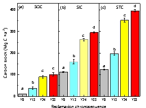 随耕作年限增加,土壤有机碳库和无机碳库均显著增加