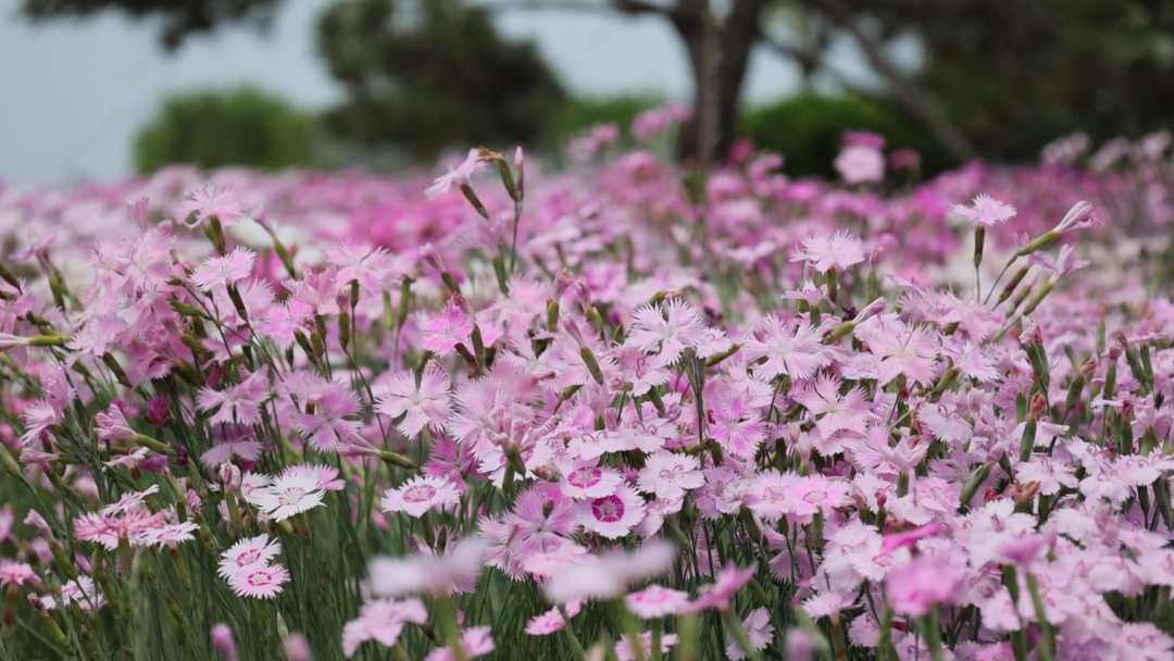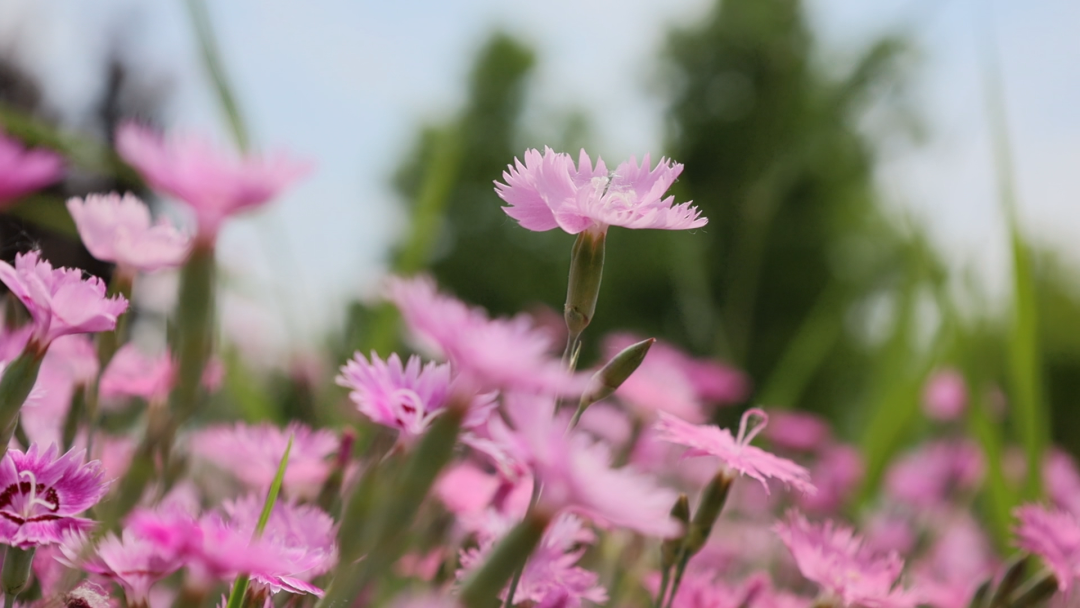 五彩缤纷的常夏石竹竞相绽放,仿佛为大地铺上了一层绚烂的“花毯”。从空中俯瞰,玫红、浅红、嫣红、紫红、粉红、粉白的各色花儿,交织成片,宛如一幅色彩斑斓的画卷。走近花海,眼前呈现的是一片姹紫嫣红,一团团,一簇簇,清新怡人,芳香四溢,吸引了众多游客驻足观赏、打卡拍照。