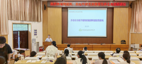 在本次报告中,焦远年研究员从进化的角度阐明了植物多倍化与适应性进化的起因以及演化。并深入探讨了木兰类植物流苏马兜铃作为研究多倍化模式植物的诸多优点,挖掘了马兜铃花发育和次生代谢产物合成相关的遗传,验证了木兰类的进化地位。最后,焦远年研究员以马齿苋的C4和CAM光合通路揭示被子植物中的多倍化对植物适应性进化的影响。报告会后,与会师生就植物多倍化演化历程及系统发育的研究方法、解析思路等方面同焦远年研究员进行了深入的交流和讨论。此次讲座不仅深刻地理解了多倍化与生物大类群的形成,也认识到了多倍化对被子植物的起源和适应性进化的影响。