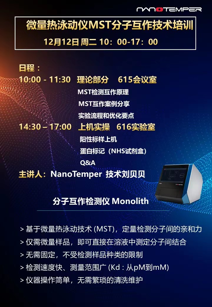 微量热泳动仪MST分子互作技术培训公告