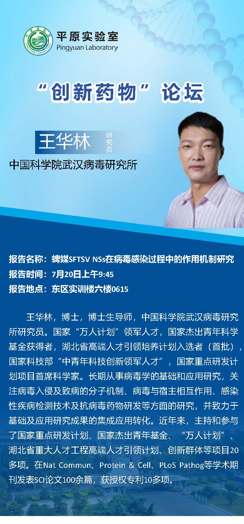 中国科学院武汉病毒研究所研究员王华林将应邀到我室讲学