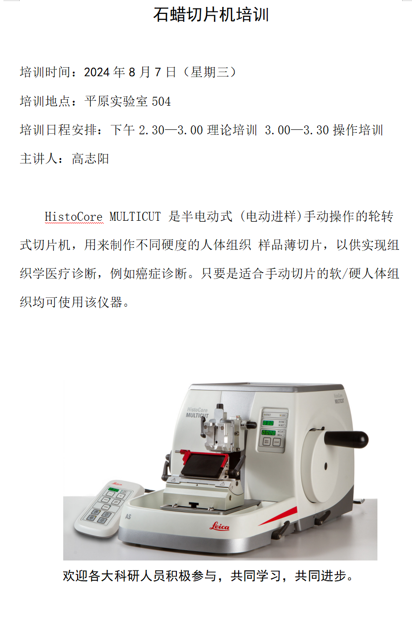 石蜡切片机培训通知