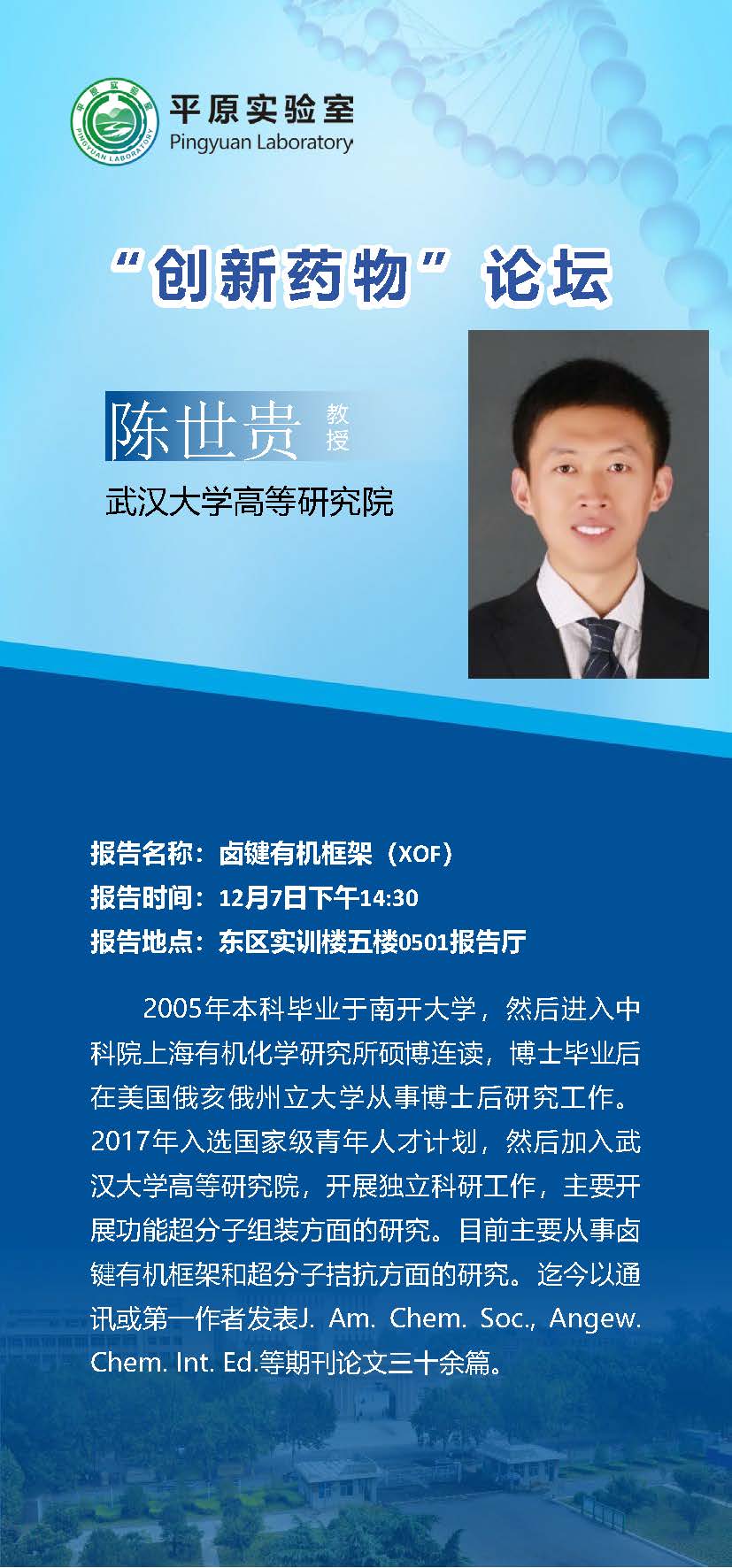 武汉大学高等研究院陈世贵教授将应邀来我室讲学