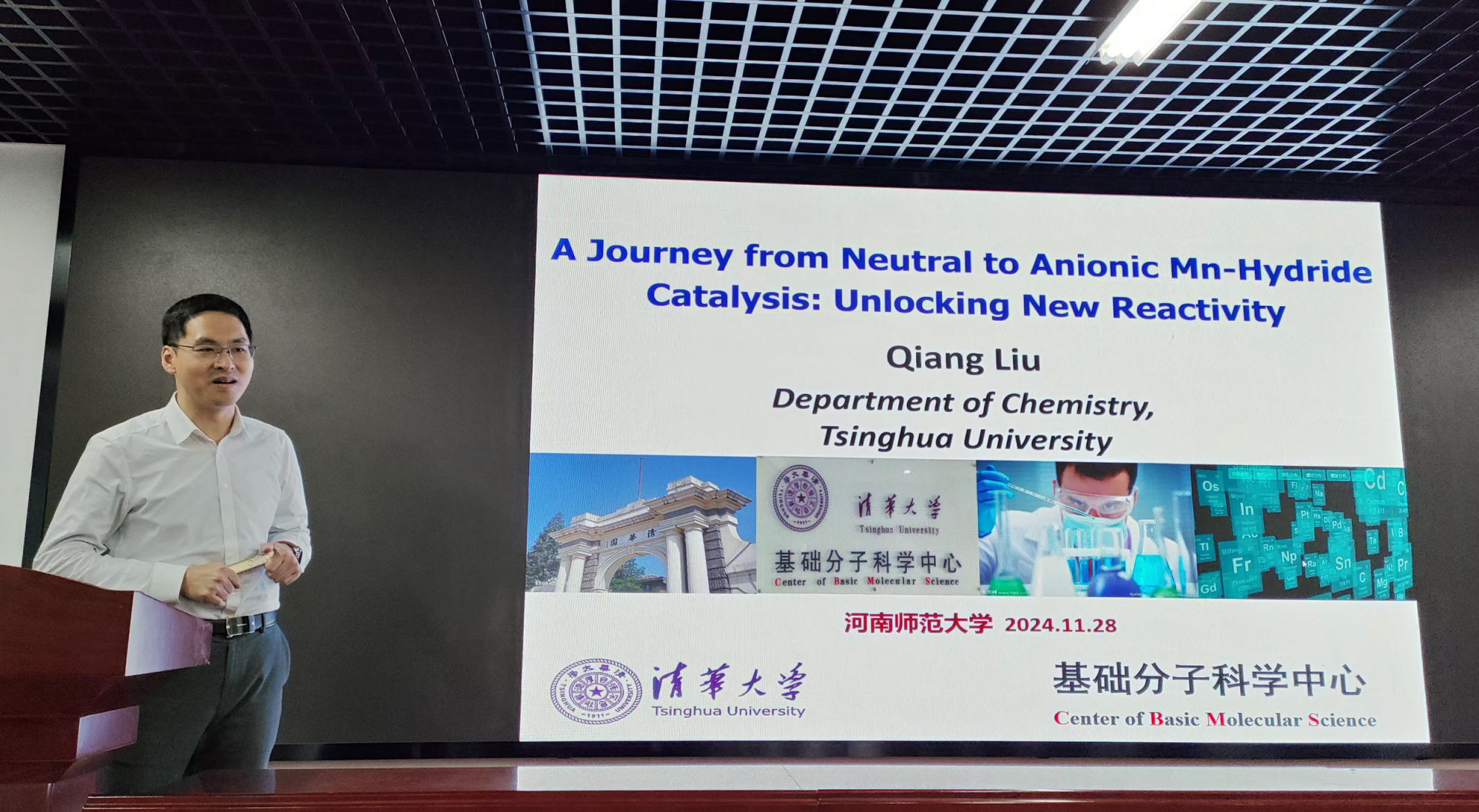 1128日下午,清华大学化学系副系主任刘强老师应邀莅临我室,作了题为“A Journey from Neutral to Anionic Mn-Hydride Catalysis: Unlocking New Reactivity的学术报告。报告会在实训楼1509报告厅进行,吸引了来自抗病毒性传染病创新药物全国重点实验室、化学化工学院、平原实验室的多位师生参加。