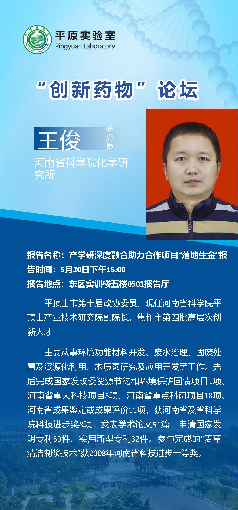 河南省科学院化学研究所王俊研究员将应邀来我室讲学
