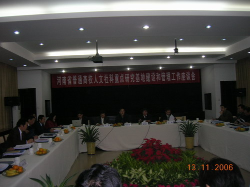 2006年11月13—14日,河南省普通高校人文社会科学重点研究基地建设和管理工作座谈会在信阳举行。我校科研处副处长郭根山教授、青少年问题研究中心主任高中建教授、科技与社会研究中心冷天吉教授参加了此次会议。