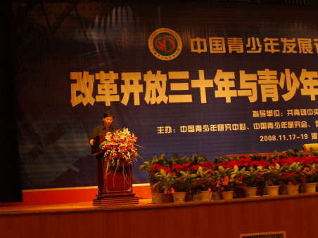 鉴于近年我校青少年问题研究中心的良好发展势头,已逐渐引起国内外同行的密切关注与高度认同,此次会议也专门开辟了宣传我校青少年问题研究中心的专栏。高中建主任在会议上做了有关我中心情况简介的专题发言,主要包括我中心的历史沿革,科研队伍,学术研究,社会服务等等概况。最后,他就团、青少年与青少年研究的关系做了深度分析,引起了与会者的赞赏。刘怀光教授也在大会上就青少年流行文化与传统文化的关系做了精彩发言。