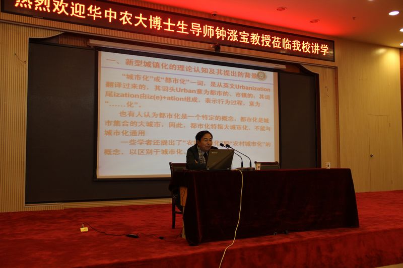 钟教授的报告以新型城镇化的理论认知及其提出的背景为切入点,认为新型城镇化是我国在特定历史时期内社会转型的一种策略和途径,必须正确处理好农村和城市之间的关系,通过实施“破除城乡户籍藩篱、明晰农村土地产权和培育新型农业经营主体”的举措,来强化我国城镇化进程的深度。针对我国新型城镇化过程中的重点和难点,钟教授提出“精简政府机构、转变政府职能、创新社会管理、改革中央财政体制、构建农村土地流转保障体系、维护农民土地权利”等措施,以此消除城乡二元结构,实现城乡社会融合,推动我国城镇化进程。钟教授前瞻性的学术视角和系统性的理论讲解,使广大师生受益匪浅,报告会上发出阵阵掌声。报告结束后,钟教授又同部分科研人员就农村社会学方面的问题进行了深入研讨。