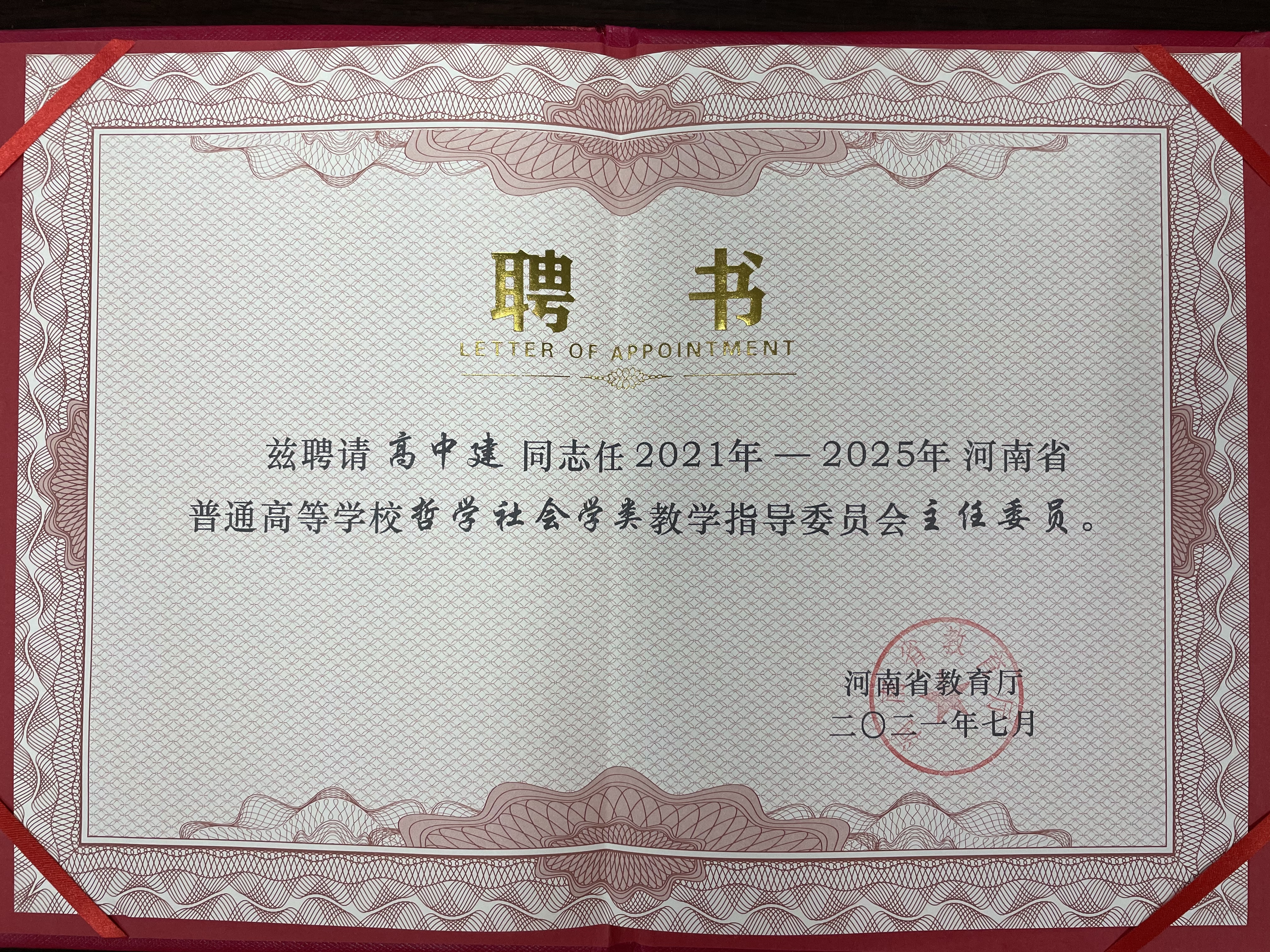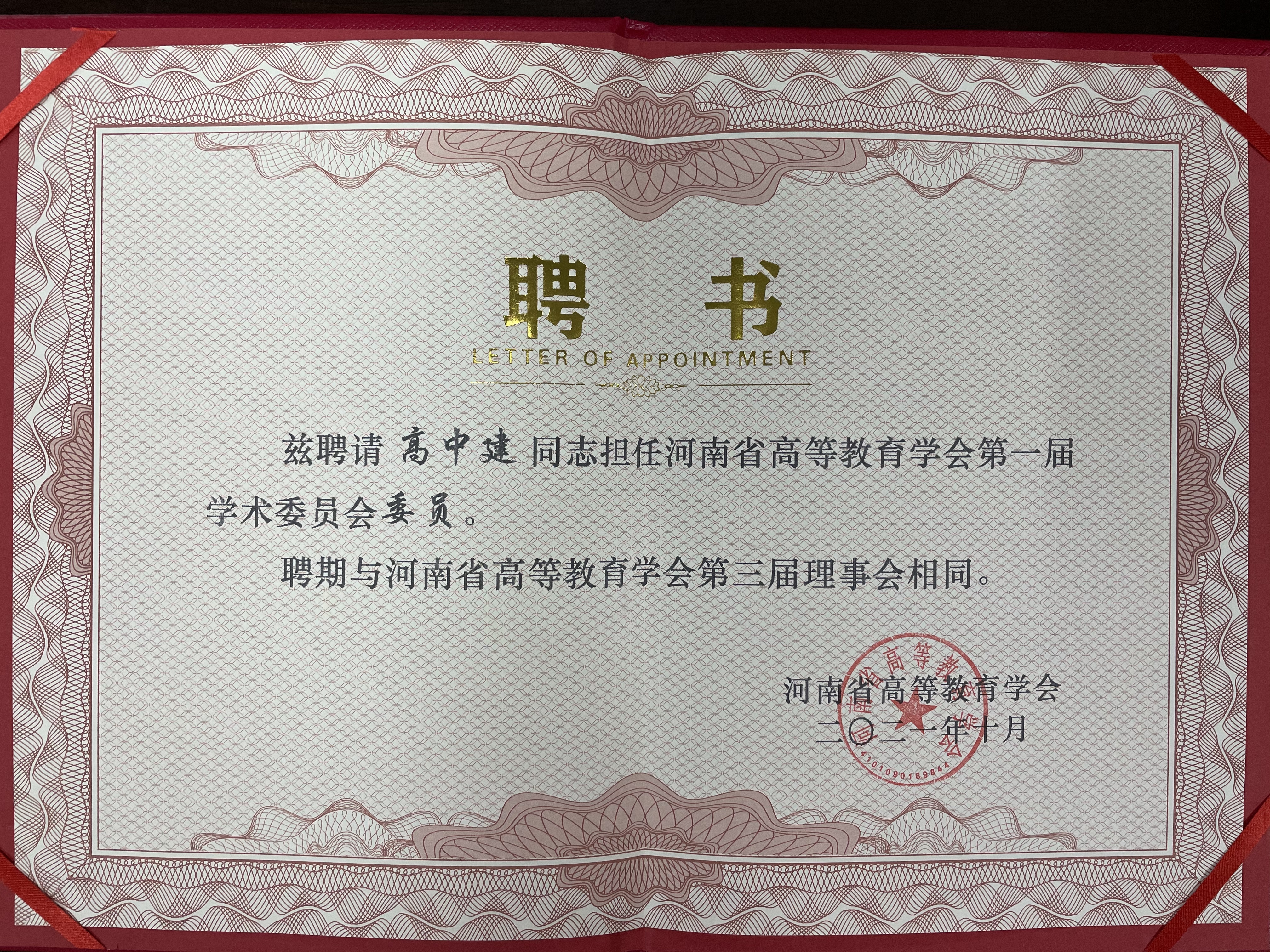 12月2日,河南省高等教育学会第一届学术委员会第一次全体会议在郑州市河南财经政法大学召开。为整合资源,会风从简,本次与省高等学校教指委主任会议合并召开。会上,向高中建教授颁发了“2021年—2025年河南省普通高等学校哲学社会学类教学指导委员会主任委员”聘书和“河南省高等教育学会聘为河南省高等教育学会第一届学术委员会委员”聘书。
