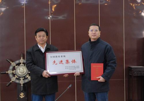 图为 人事处长黑建敏从焦留成校长手中接过奖匾