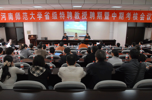 焦留成校长代表学校对教育厅高教处领导及各位专家的到来表示欢迎,简要回顾了我校近几年在特聘教授设岗、招聘、服务等方面的工作开展情况,肯定了特聘教授为学校学科发展作出的突出贡献,并对教育厅多年来对我校工作的大力支持表示感谢。李培俊副处长就特聘教授岗位设立的政策背景、现状及不足和考核的目的进行了诠释,并就考核的内容、标准进行了说明。王桂兰副校长代表学校向专家组和教育厅领导汇报了我校特聘教授合同履行情况,相关学院院长向专家组和教育厅领导汇报了学院就特聘教授合同的履行情况。