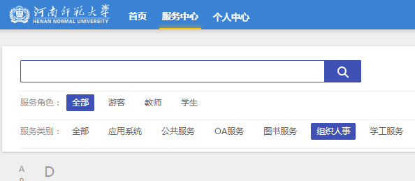 进入伟德官网下载苹果版大学官网,点击上方【办事大厅】(图1-1),进入登录页面后输入工号、密码登录办事大厅(图1-2)。点击【服务中心】(图1-4),选择【组织人事】,筛选出人事相关服务(图1-5)。