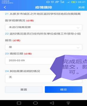 3.填写信息时,通过第一种方式登录的,每日没有变化的会在下次登录时自动生成,有变化的要如实填写变化情况;通过第二种方式网址链接方式登录的,每次所有问题均需要重新填写。无论哪种方式登录,里面的问题内在关联项都已经设定,请根据题目提示情况进行选择。