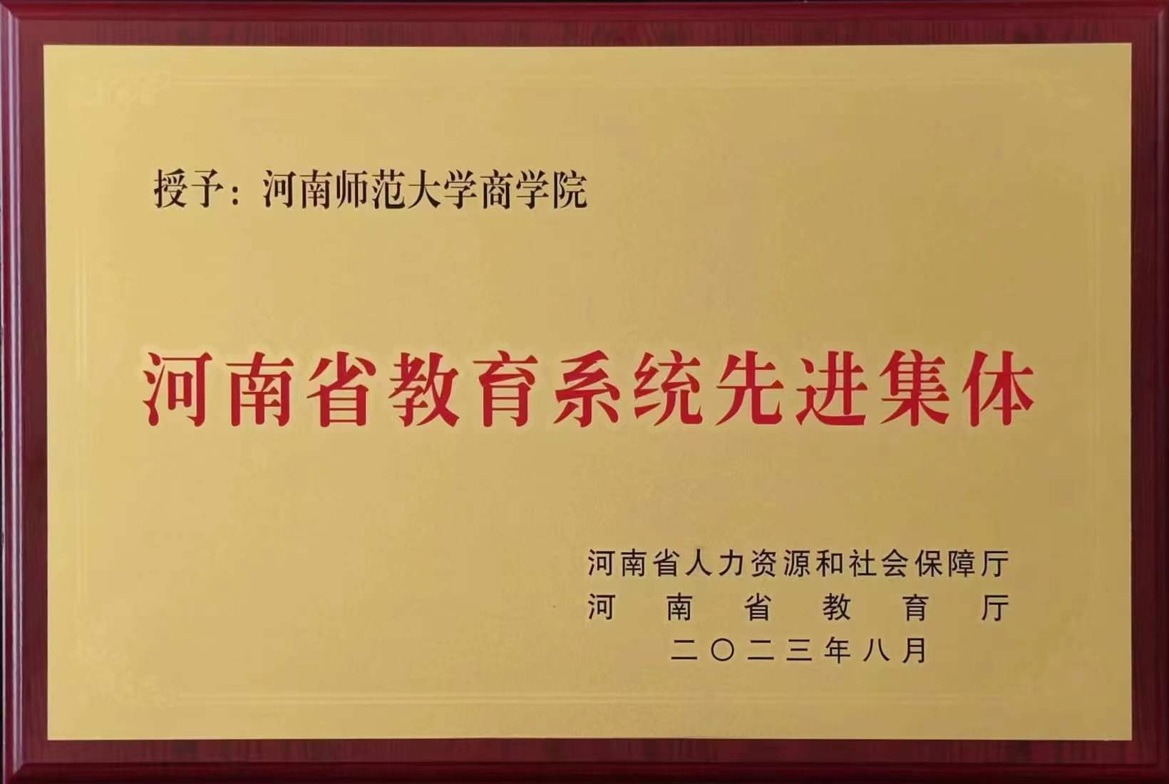 近日,河南省人力资源和社会保障厅、河南省教育厅联合下发《关于表彰河南省教育系统先进集体和先进个人的决定》(豫人社发〔2023〕17号),我校教师宋京双荣获“河南省教育系统先进工作者”的称号,刘志芳、闫庆来、史水娥、谢明胜4名教师获得“河南省优秀教师”荣誉称号,商学院被评为“河南省教育系统先进集体”。