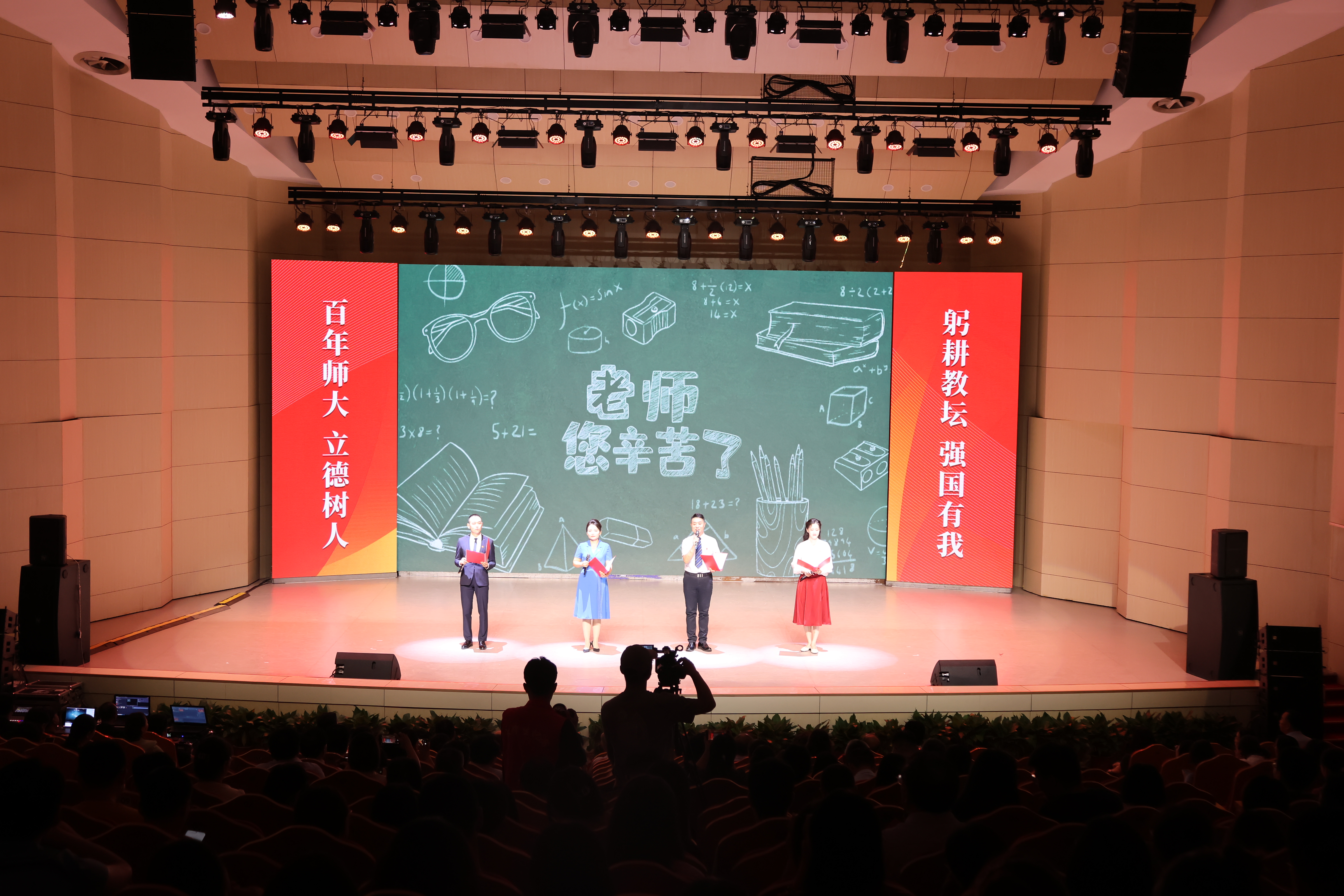 校党委书记、校长王宗敏围绕今年教师节“躬耕教坛、强国有我”的主题,回顾了学校一年来取得的显著成绩,向全体教职工致以节日的祝福。他从“何为合格大学教师”“何为优秀大学教师”“何为大先生”三个层次深刻回答了“强校建设、教师何为”的课题。他指出,一是我们的老师至少要成为合格的大学教师,要具备扎实的学科知识和教育教学知识,以研促教、以研优教;要提升数字化教学素养,适应新时代教学方式的变化;要坚持以“学生可选择权”为核心的人才培养供给侧改革,为专业生存而战、为课程质量而战、为自身生存而战,办对学生负责的教育;要提高学习力,学会做人、学会求知、学会做事、学会共处,弘扬终身学习、喝彩文化,汇聚学校改革发展的群体智能。二是我们的老师都应努力成为优秀的大学教师,要在合格教师标准上努力进取,具有开拓创新的姿态、革故鼎新的意志、锐意创新的勇气、敢为人先的锐气,努力成为先进思想的激发者、学生人生的导师、科技创新的先锋和师德高尚的楷模。三是我们的老师要立志争做新时代的大先生,努力追求卓越,志存高远,以大先生为标杆,有争做大先生的心气,敢想敢干、敢于挑战、勇争第一。他强调,全体教师要传承学校百年优良校风,向我们身边的优秀教师学习,坚守三尺讲台,潜心教书育人,敢于争先进位,奋力谱写学校新百年事业高质量发展新篇章,共同铸就属于师大教师的荣耀!