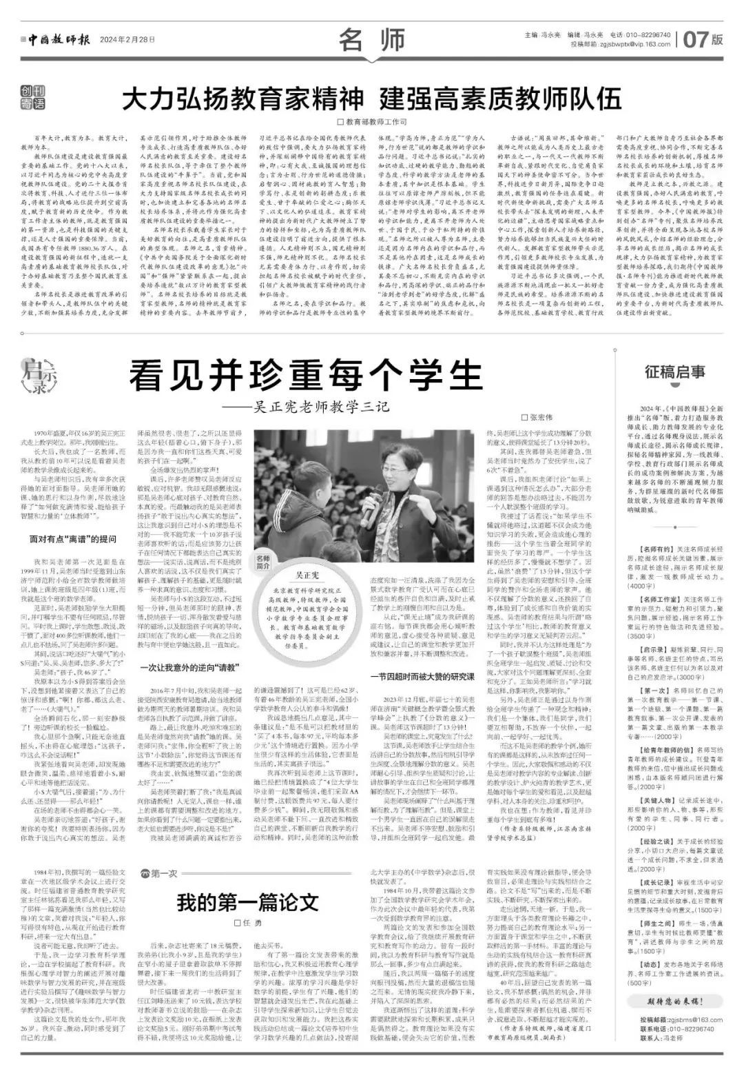 教师是立教之本,兴教之源。建设教育强国,办好人民满意的教育,呼唤更多的名师名校长,呼唤更多的教育家型教师。
